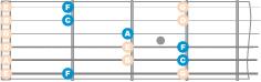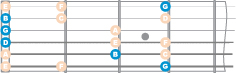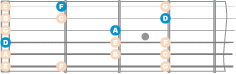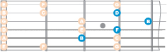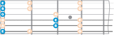 Now let’s look at all of the chords that come from the C major scale. As you look at these pictures, notice that the notes are taken directly from the scale. The blue dots are the notes in the chord. The faded orange dots are the notes in the C major scale.
