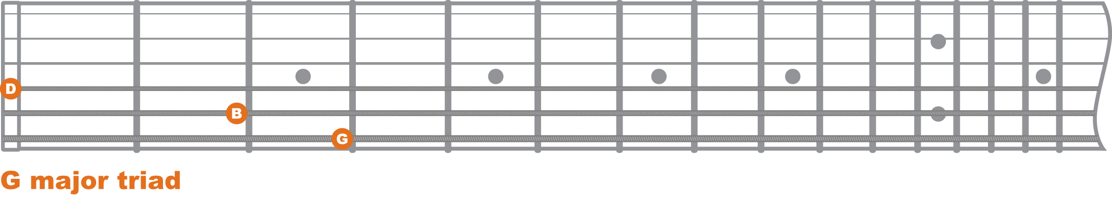 So what are we to do? How can we expand this basic G major triad onto the remaining three unused strings? There are two ways: