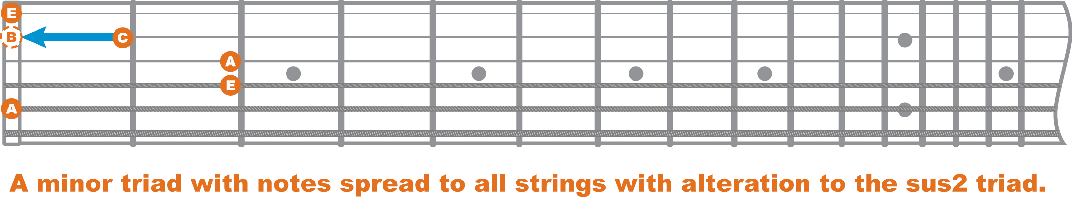 Now, to get from a minor chord to a sus2 chord, we have to flatten the third of the minor chord: