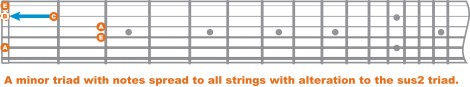 • A sus2 chord can be found easily by flattening the third of a minor chord.