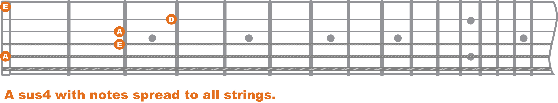 Alright, let’s follow a similar procedure to find the A sus4 chord. Let’s start with a playable A major chord: