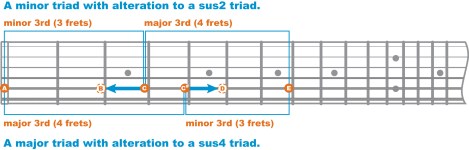 • The fifth of either of the two sus chords is the same as the fifth of a major or minor chord of the same root.