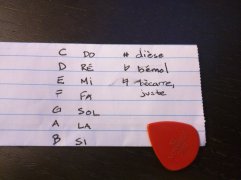 This is one time that being a worry-wart and a planner a paid off. A few days before the jam I researched musical words en français to be sure that I wouldn’t be caught unaware of some French musical vernacular that I wouldn’t understand. So when Jean-Luc explained that the first chord was “Sol” I felt a tinge of pride that I knew that Sol was G. I didn’t even need the cheat sheet that I tucked into my breast pocket.